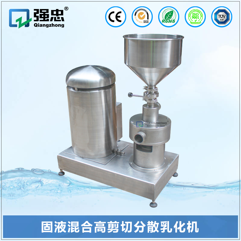 本固液混台器由主机体与混合泵齿轮构成,二者垂直安装。通过一个双层壁管道将液态物与固态物分别抽吸进去,避免了在进入主体部分前凝结成块。液体高速进入混合机主机提,在转子与定子中心产生真空.以吸入固态物。固态物通过在斗口罐下方的阀门调节均匀吸入。设计简洁、功能多样。可以迅速、均匀地混合多种固态物,不与空气接触。充分混合,产品循环。在最短的时间内对物料进行分散、剪切、乳化处理,粒径分布范围变窄。由此可制得精细的长期稳定的产品。本设备设计先进、翻作清良、生产效率高、经久耐用,已获得国家专利。